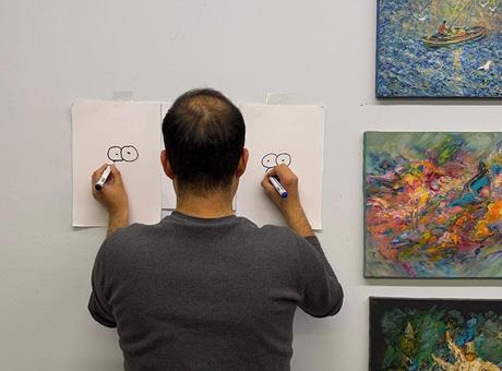 Olağanüstü yetenek! Aynı anda elleriyle 2 farklı resim çiziyor