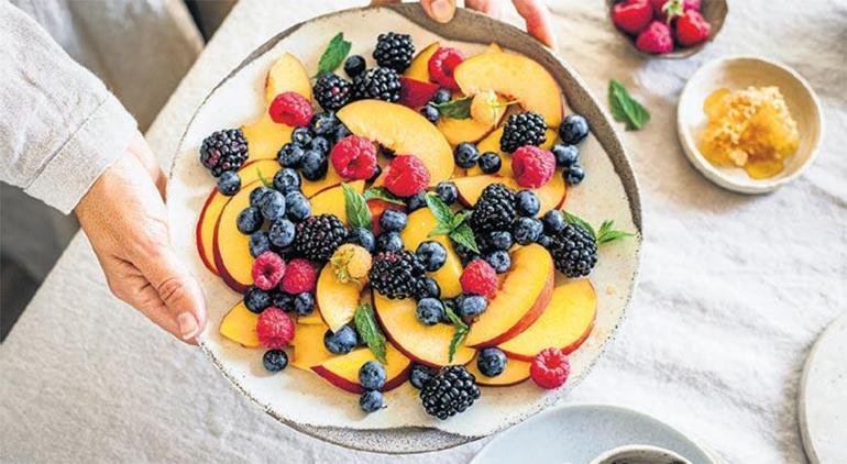 Taze sebze ve meyveler Yaz mevsiminin bize sunduğu taze ve su oranı yüksek meyve-sebzeler, hem vücudu serinletir hem de vitamin mineral ihtiyacını karşılar. Karpuz, kavun, şeftali, erik ve üzüm gibi meyveler; salatalık, domates, semizotu gibi sebzeler lif açısından da zengindir. Bu gıdalar, bağışıklık sistemini destekleyerek yazın getirdiği yorgunlukla baş etmeye de yardımcı olur.