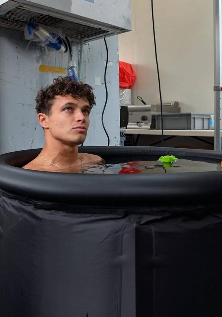 McLaren pilotu Lando Norris ise Singapur'dan sonra buz banyosu yaptı.