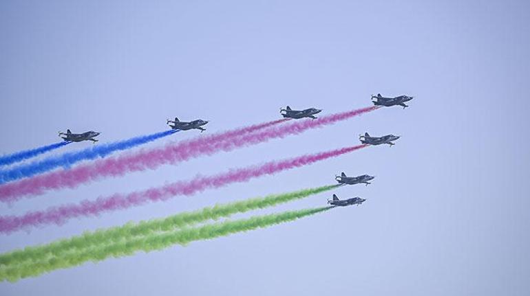 2. Karabağ Savaşı'nın seyrini değiştiren insansız hava araçları (İHA), Azerbaycan envanterindeki Bayraktar TB2 ve Akıncı SİHA’lar da törende yer aldı. Hazar Denizi’nde, Bakü açıklarında demirli savaş gemileri ve Hava Kuvvetlerine ait uçaklar da Azerbaycan bayrağının renklerinde duman bırakarak gösteriye katıldı.