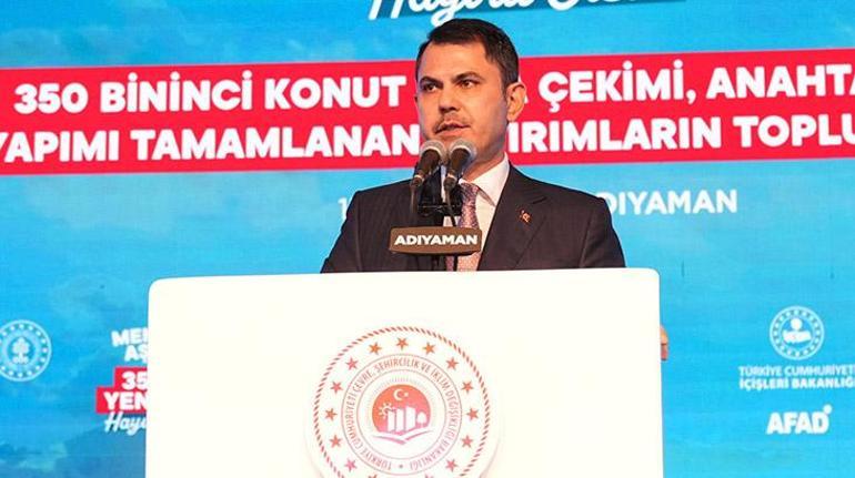 “Memleket Aşkıyla 350 Bin Yuva Tamam” sloganıyla düzenlenen “350 Bininci Afet Konutu Kura Çekimi, Anahtar Teslimi ve Yapımı Tamamlanan Yatırımların Toplu Açılış Töreni” Cumhurbaşkanı Recep Tayyip Erdoğan’ın katılımıyla Adıyaman’da gerçekleştirildi. Törene İçişleri Bakanı Ali Yerlikaya, Ulaştırma ve Altyapı Bakanı Abdulkadir Uraloğlu, Tarım ve Orman Bakanı İbrahim Yumaklı ile Aile ve Sosyal Hizmetler Bakanı Mahinur Özdemir Göktaş katıldı. Törende konuşan Çevre, Şehircilik ve İklim Değişikliği Bakanı Murat Kurum, sözlerinin başında Azerbaycan-Gürcistan sınırında düşen C130 tipi askeri kargo uçağında şehit olan askerlere rahmet, ailelerine başsağlığı diledi.