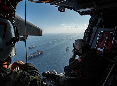 USS Gerald R. Ford liderliğindeki taarruz filosunun 4 binden fazla askeri personel ile düzinelerce taktik askeri uçağı taşıdığı kaydedilerek, "Kendi sınıfının ilk uçak gemisi olan USS Gerald R. Ford, gündüz-gece fark etmeksizin sabit kanatlı uçakların iniş ve kalkışına aynı anda imkan tanıyarak katıldığı operasyonları kesintisiz şekilde destekleyebilmektedir" hatırlatmasında bulunuldu. USS Gerald R. Ford uçak gemisinin yanı sıra, Arleigh Burke sınıfı güdümlü füze destroyerleri USS Bainbridge ve USS Mahan ile entegre hava ve füze savunma komuta gemisi USS Winston S. Churchill dahil çok sayıda askeri varlığın bölgeye konuşlandırıldığı vurgulandı.