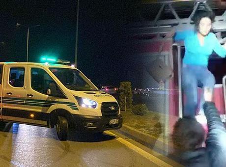 Yangın yerine gelen itfaiye ekipleri, bir yandan alevlere müdahale ederken, bir yandan da evlerinde mahsur kalan vatandaşları kurtarmak için merdivenli araçla çalışma başlattı.