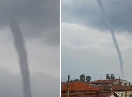 Muğla'nın Marmaris ilçesi Bozburun Mahallesi'nde deniz üzerinde oluşan hortum, bölgede kısa süreli tedirginliğe yol açtı.