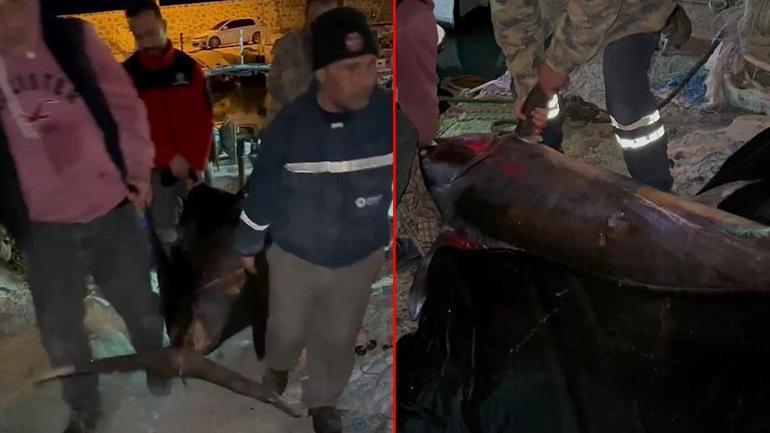 Avın başlamasından itibaren 2 buçuk saat boyunca mücadele eden balıkçılar, güçlü yapısı ve direnç göstermesiyle bilinen kılıç balığını büyük bir uğraş sonucu tekneye çekmeyi başardı. Kıyıya getirildiğinde dört kişinin yardımıyla taşınabilen dev balık, hem boyutu hem de ağırlığıyla bölgede son yılların en dikkat çekici avlarından biri olarak kayıtlara geçti. Kıyıya çıkarılırken dört kişinin yardımıyla taşınan dev balık, daha sonra İzmir'de bir işletmeye kilosu 500 TL'den toplam 65 bin TL karşılığında satıldı.