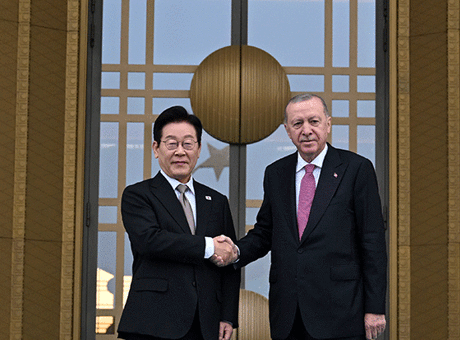 Cumhurbaşkanı Recep Tayyip Erdoğan, Türkiye'yi ziyaret eden Güney Kore Devlet Başkanı Lee Jae Myung'u resmi törenle karşıladı. Lee'nin makam aracını, Cumhurbaşkanlığı Külliyesi önündeki caddede karşılayan süvariler, araca protokol kapısına kadar eşlik etti.