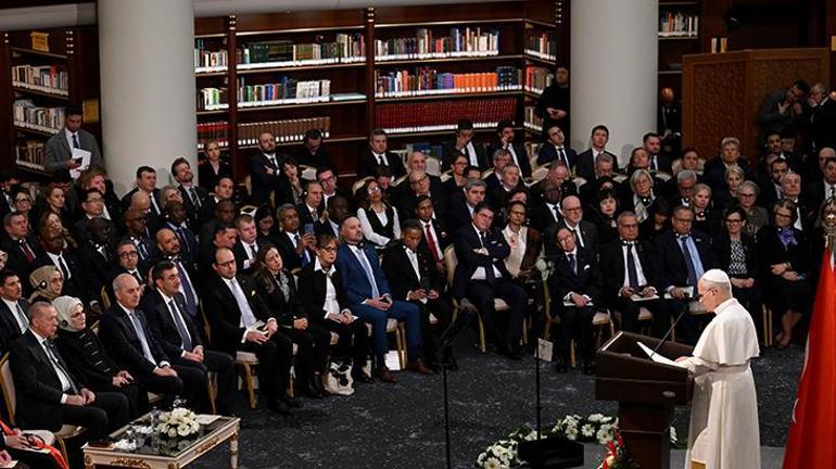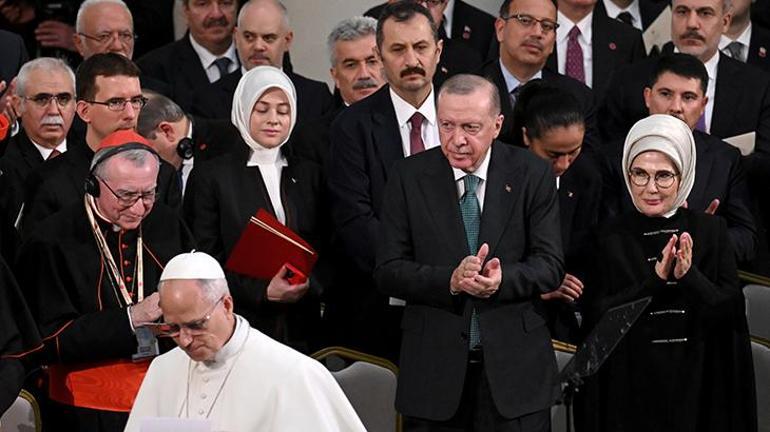 Cumhurbaşkanı Erdoğan ve Papa 14. Leo, bu salondan tüm dünyaya, İsrail'in Filistin'de devam eden soykırımına karşı ve Orta Doğu'da barışın inşasına yönelik mesajlar vermesi dikkat çekti.