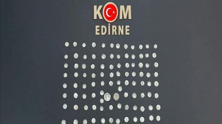 Edirne'de, tarihi eser niteliğindeki sikkeleri yurt dışına kaçırmaya çalışırken yakalanan 2 zanlı tutuklandı.