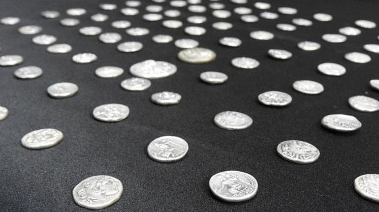 Otomobilde yapılan aramada tarihi eser olduğu değerlendirilen 130'dan fazla gümüş sikke ele geçirildi, 2 şüpheli gözaltına alındı.
