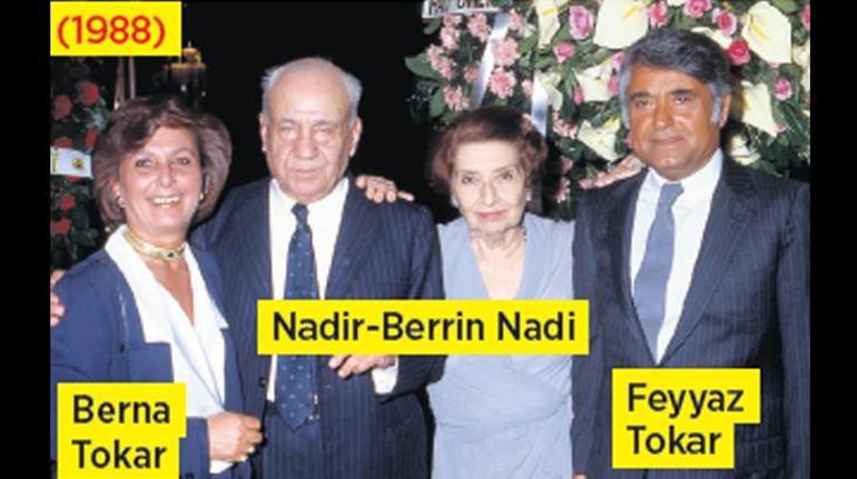 Gazeteciler Nadir Nadi ile Feyyaz Tokar’ı, eşleri Berrin Nadi ve Berna Tokar’la İstanbul Sheraton Oteli’nde verilen bir davette görüntülemiştim.