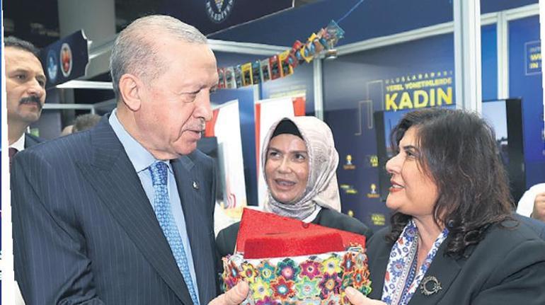 Aydın Büyükşehir Belediye Başkanı Özlem Çerçioğlu, Cumhurbaşkanı Erdoğan’ı, Aydın standında ağırlayarak başta Aydın inciri olmak üzere şehrin yöresel ürünlerini tanıtıp Aydın’a özel işlemeli Başefelerin taktığı fes ile birlikte yöresel ürünler hediye etti.