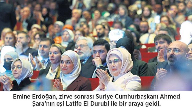 TMV Başkanı Özdil’in ev sahipliği yaptığı zirveye Emine Erdoğan’ın yanı sıra Suriye Cumhurbaşkanı Şara’nın eşi Durubi, Türkiye’nin Şam Büyükelçisi Nuh Yılmaz, Kültür ve Turizm Bakan Yardımcısı Serdar Çam, Sağlık Bakan Yardımcısı Şuayip Birinci, Gençlik ve Spor Bakan Yardımcısı Enes Eminoğlu, çok sayıda ülkeden bakan ve bürokrat, rektörler, iş insanları, akademisyenler ve Maarif Vakfı öğretmenleri ile öğrencileri katıldı.