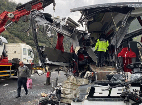 Kazada demir yığınına dönen otobüs, yapılan incelemenin ardından çekici ile çekilip, otoyol kontrollü olarak araç trafiğine açıldı.