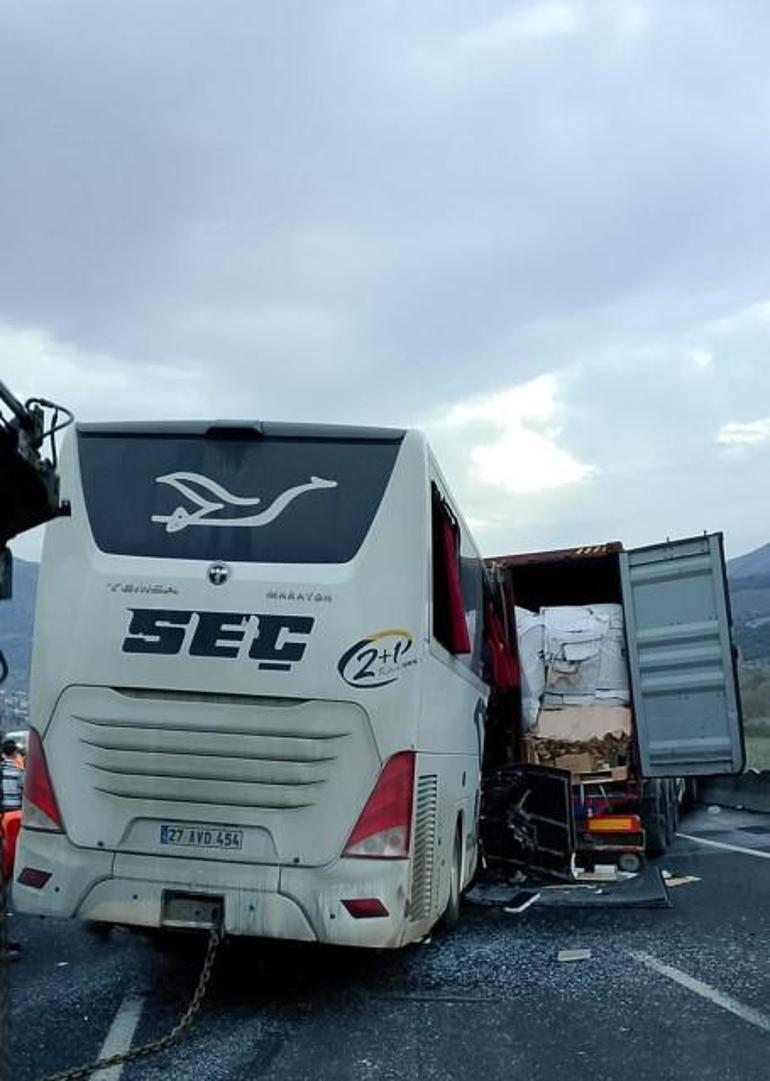 Kaza, saat 05.00 sıralarında Adana- Gaziantep otoyolu Bahçe ilçesi Ayran Tüneli yakınlarında meydana geldi. A.A. (42) yönetimindeki Seç turizme ait İzmir-Gaziantep seferini yapan 27 AVD 454 plakalı otobüs, sağ şeritte park halinde olan H.K. (52) idaresindeki 06 CSZ 834 plakalı TIR'a arkadan çarptı.