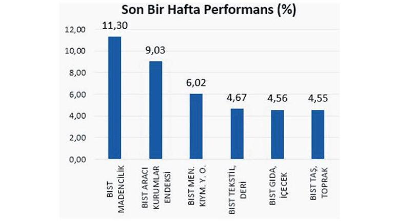 BIST 100 haftayı yüzde 1’lik yükselişle tamamlarken BIST Bankacılık Endeksi (XBANK) haftayı yüzde 3 yükselişle tamamladı. BIST 30’un haftalık kazananları listesinde de ağırlığını hissettirdi. İş Bankası yüzde 3.68, Akbank yüzde 3.47, Yapı Kredi yüzde 4.75 ve Garanti BBVA yüzde 4.28 artışla öne çıktı. Türkiye Altın İşletmeleri’nin yüzde 15.86 ile listenin zirvesinde yer alması, madencilik sektöründeki ivmenin sürdüğünü ortaya koyarken; Astor Enerji, Turkcell ve Sabancı Holding gibi geniş portföy etkisi olan şirketler de ilk 10’da yer aldı.