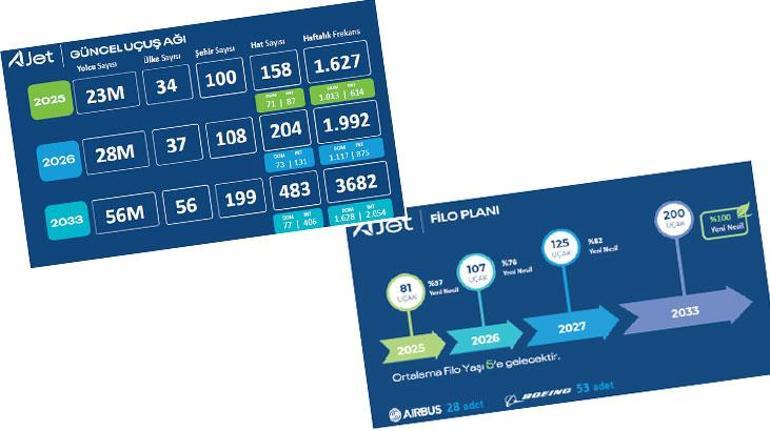 AJet’in büyüme planının omurgasını yeni nesil uçaklar oluşturuyor. Bolat’ın verdiği takvime göre, filoda hem kapasite artışı hem de verimlilik odaklı bir dönüşüm aynı anda ilerliyor. Hali hazırda 2025 yılı itibarıyla 81 uçakla operasyonlarını sürdürdüklerini belirten Bolat, “2026 yılında filomuzu 107 uçağa çıkaracağız ve bu uçakların yüzde 76’sı fabrika çıkışlı yeni nesil olacak. Uzun vadeli hedefimiz ise 2033 yılında tamamı yeni nesil ve çevreci 200 uçaklık filoya ulaşmak. Bu sayede yakıt verimliliğimizi artırırken, yolcularımıza daha kaliteli bir hizmet sunacağız” dedi.