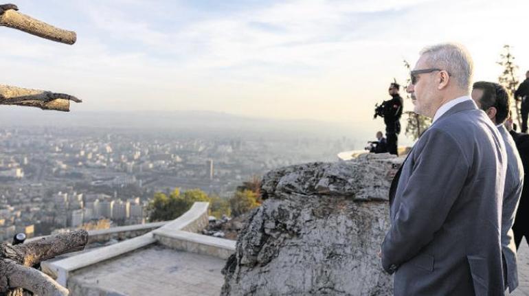 Dışişleri Bakanı Fidan, Suriye Dışişleri Bakanı Şeybani ile Kasyun Dağı’ndan Şam’ı seyretti. Başkent’in merkezinde kentin büyük bölümüne hakim bir yükselti olan Kasyun Dağı, Suriye’deki iç savaşta büyük önem kazanmıştı. Devrik rejim, sivil unsurların çıkmasını yasakladığı dağa, Beşar Esad’ın kardeşi Mahir Esad’a bağlı 4. Tümen askerleri başta olmak üzere yoğun bir konuşlanma yapmıştı.