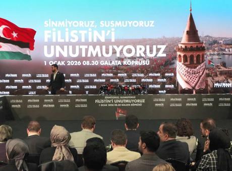 "1 Ocak 2026 sabahı, saat 08.30'da 'Unutmayız' demekle yetinmediğimizi, unutmadığımızı ve unutturmayacağımızı göstermek için Galata Köprüsü'ne gelin. Anneler, babalar, gençler suskunluğun duvarını yıkmaya, alışkanlığın zincirini kırmaya, vicdanın, merhametin temsilcisi olmaya gelin. Vakıflar, dernekler, cemiyetler, camialar, kınama cümlelerinin ötesine geçin. Sahaya, sokağa, şahitliğe gelin. Basın mensupları, fenomenler, sanatçılar, bir manşet değil bir hakikat taşıyın, mazlumun sesini satır satır dünyaya duyurmaya, tarihe vicdan kaydı düşmeye gelin. O, bu, şu demeden hep beraber gelin. Bütün kimliklerden arınarak gelin. Gelin ki yeni yılın ilk mesajını tüm dünyaya hep beraber verelim. Sinmediğimizi, susmadığımızı, Filistin'i, unutmadığımızı tüm dünyaya hep beraber gösterelim."