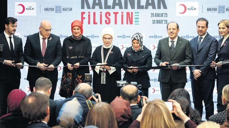 SERAY ŞAHİNLER / İSTANBUL - Cumhurbaşkanı Recep Tayyip Erdoğan’ın eşi Emine Erdoğan, Kalyon Vakfı ve Türk Kızılayı iş birliğinde, Gazze’de yıkımı ve direnişi görünür kılmak için Kalyon Kültür’de düzenlenen “Kalanlar” sergisiaçılışında konuştu.Erdoğan buradayaptığı konuşmada “Bundan sonra Filistin’de tek bir kuşun kanadı kırılsa, tek bir ağacın yaprağı koparılsa, tek bir çiçek bile solsa mutlaka sanata konu olmalıdır” dedi. Erdoğan, utanç verici bir çifte standart uygulandığını gördüklerine işaret ederek, şunları kaydetti:
