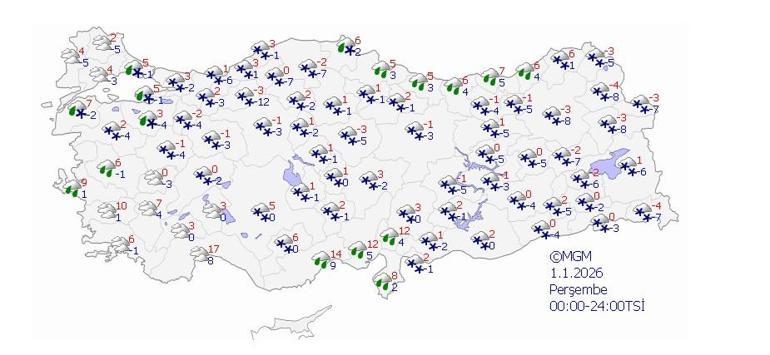 Kentte eksi 1 dereceye kadar düşecek hava sıcaklığıyla birlikte 1 Ocak Perşembe günü beyaz örtünün oluşacağı tahmin ediliyor.