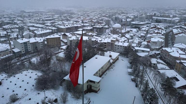 Bolu’da gece saatlerinde etkili olan kar yağışı sonrası kent merkezi beyaza büründü. Kar kalınlığının 10 santimetreye ulaştığı şehir, havadan dronla görüntülendi.