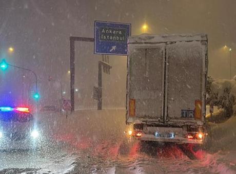 Yoğun kar yağışı ve buzlanma riski nedeniyle D-100 kara yolu Bolu Dağı geçişi, İstanbul ve Ankara yönlerinde ağır tonajlı araçların trafiğine kapatıldı. Polis ekipleri, tır ve kamyonları Elmalık Kavşağı’ndan TEM Otoyolu’na yönlendiriyor. Bölgede kar yağışının etkisini azaltması ve yolun güvenli hale gelmesinin ardından ağır tonajlı araçların geçişine izin verileceği öğrenildi.