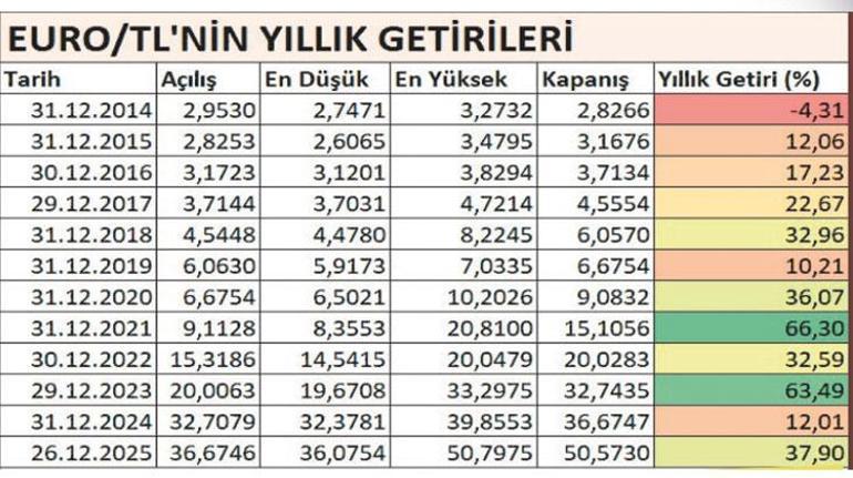 2025’te euro yüzde 37.9, dolar ise yüzde 21.2 oranında yükseldi. 2026’da ise dövize yönelen yatırımcılar için dolar korunma aracı, euro da getiri arayan ve dalgalanmayı göze alanlar için daha öne çıkan bir seçenek olabilir.