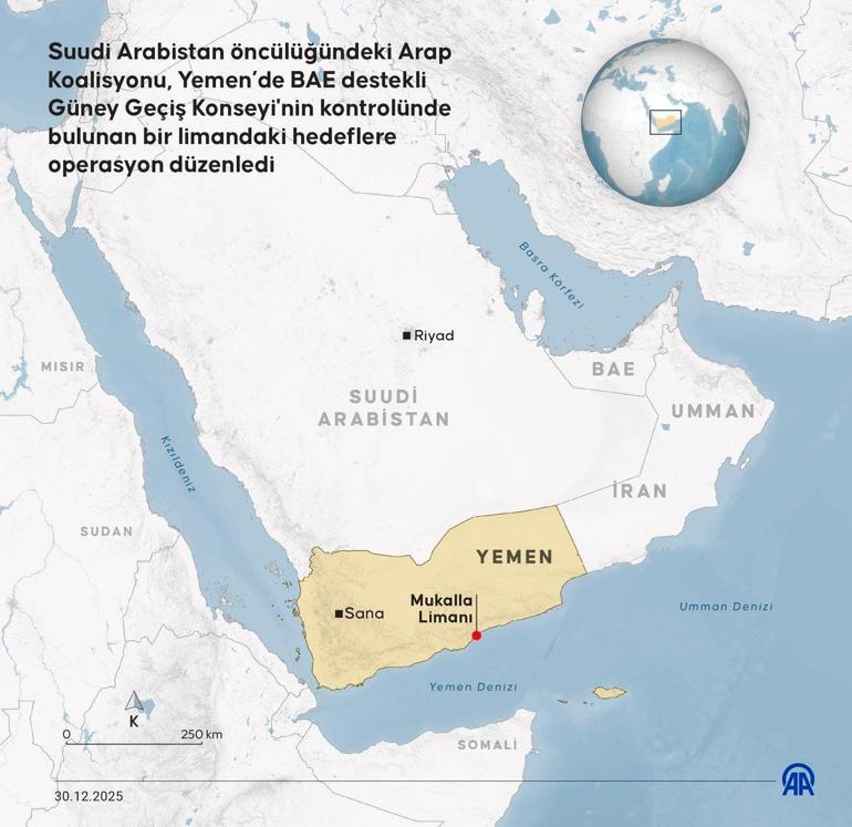 Suudi Arabistan liderliğindeki koalisyon, "Birleşik Arap Emirlikleri’nden gelen ve oradaki ayrılıkçılar için silah sevkiyatı olduğu" gerekçesiyle Yemen’in liman kenti Mukalla’yı bombaladı.