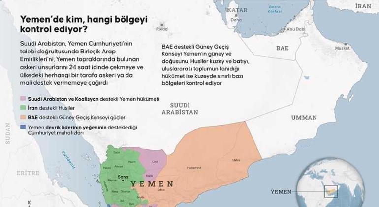 Riyad yönetimi, BAE’den Yemen’deki tüm askeri unsurlarını derhal tahliye etmesini ve bölgedeki yerel gruplara verdiği mali ve askeri desteği tamamen kesmesini istedi.