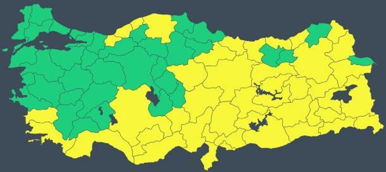Yarın, “Adana, Adıyaman, Ağrı, Antalya, Aydın, Bingöl, Bitlis, Diyarbakır, Elazığ, Erzincan, Erzurum, Gaziantep, Giresun, Hakkari, Hatay, Mersin, Kars, Kastamonu, Kayseri, Konya, Malatya, Kahramanmaraş, Mardin, Muğla, Muş, Niğde, Ordu, Rize, Siirt, Sivas, Tokat, Trabzon, Tunceli, Şanlıurfa, Van, Yozgat, Zonguldak, Karaman, Batman, Şırnak, Bartın, Ardahan, Kilis, Osmaniye, Düzce” için sarı kodlu uyarı yapıldı.
