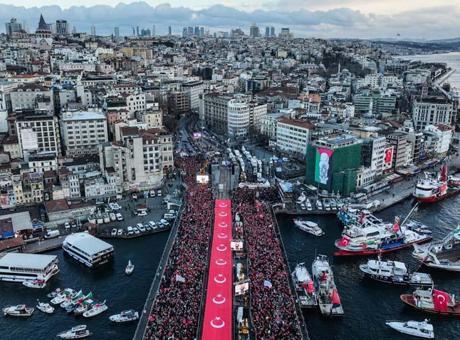 İstanbul’da Filistin’e destek için dikkat çeken bir buluşma yaşandı. İnsanlık İttifakı ve Milli İrade Platformu öncülüğünde Galata Köprüsü’nde düzenlenen yürüyüşe katılan vatandaşlar, sabah namazı öncesinde Ayasofya, Sultanahmet ve çevredeki camilerde toplanmaya başladı. Soğuk havaya rağmen binlerce kişi Filistin’e destek için İstanbul’un tarihi meydanlarında bir araya geldi. Türk ve Filistin bayraklarıyla meydanları dolduran kalabalık Galata Köprüsü’ne doğru yürüdü.