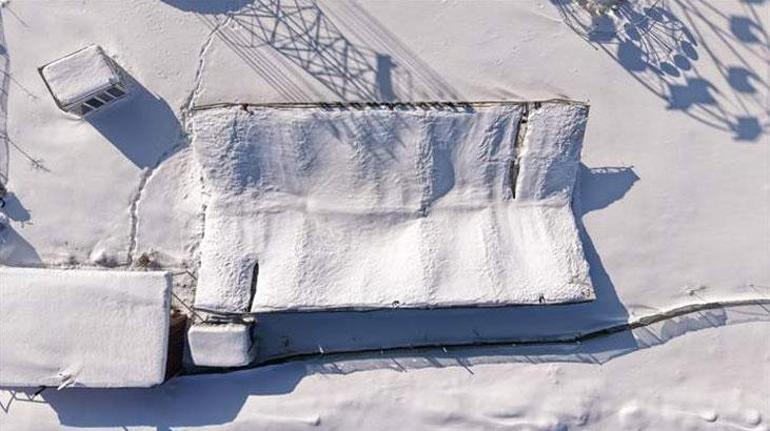 Kar kalınlığının 1 metreye ulaştığı ilçenin Sahilkent Mahallesi'nde bulunan lunaparktaki bir oyun alanının çatısı çöktü.