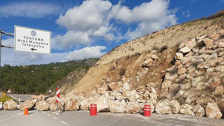 D-400’de korku dolu anlar! Heyelan duvarı çöktü, kayalar yola saçıldı