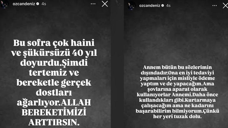 Özcan Deniz'in kanserle mücadele eden annesi Kadriye Deniz, 30 Aralık'ta hastaneye kaldırılmıştı. Gürler, "Dayan annem" notuyla annesinin hastaneye götürüldüğü anları paylaşmıştı.