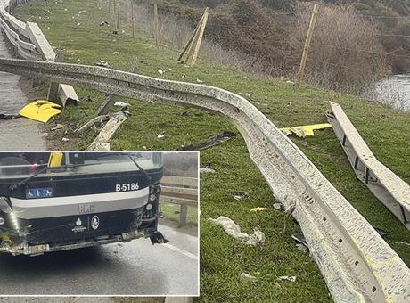 Bolluca İhsaniye Caddesi'nde, Arnavutköy-Kemerburgaz seferini yapan 34 NL 8075 plakalı otobüs, kayganlaşan yolda savrularak bariyere çarptı.