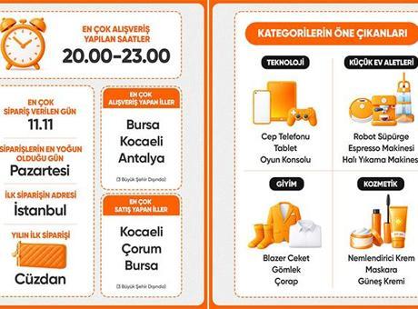 En yüksek sipariş hacmi Kasım ayında gerçekleşirken, bu ayı Ekim ve Eylül izledi. Kullanıcıların alışverişlerini ağırlıklı olarak 20.00–23.00 saatleri arasında gerçekleştirdiği görüldü. Yıl boyunca en çok sipariş verilen gün 11.11 olurken, yıl ortalamasında siparişlerin en yoğun olduğu gün pazartesi oldu. 2025 yılının ilk siparişi İstanbul’dan verilirken sipariş edilen ürün kadın cüzdanı oldu.