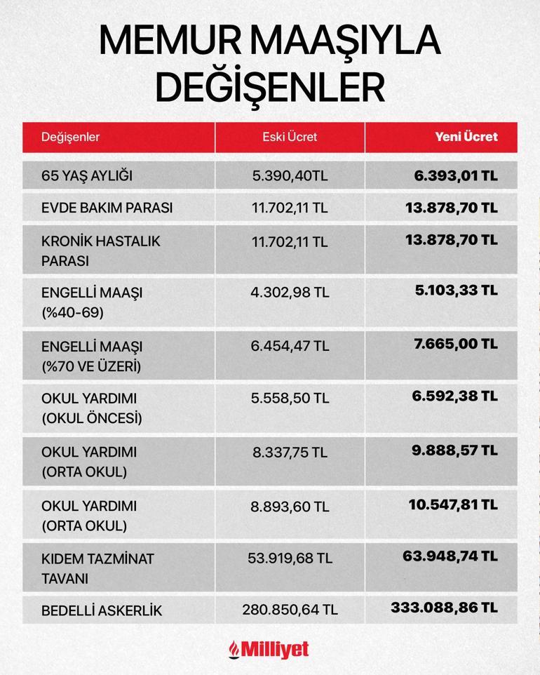 5.390 TL olan 65 yaş aylığı memur maaşına yapılan zamla birlikte 6.393 TL oldu.