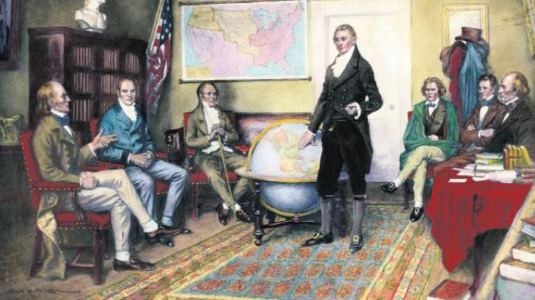 1817-1825 yılları arasında görev yapan James Monroe, ABD tarihinin “sessiz ama etkili” başkanlarından biriydi. Karizmatik bir lider değildi; ancak son derece güçlü bir ekiple çalıştı. Bu ekip sayesinde, etkisi asırlarca sürecek kararların altına imza atıldı. Dışişleri Bakanı John Quincy Adams, Monroe Doktrini’nin gerçek mimarıydı. Savaş Bakanı John C. Calhoun orduyu modernleştirdi. Hazine Bakanı William H. Crawford ise mali disiplini sağladı.