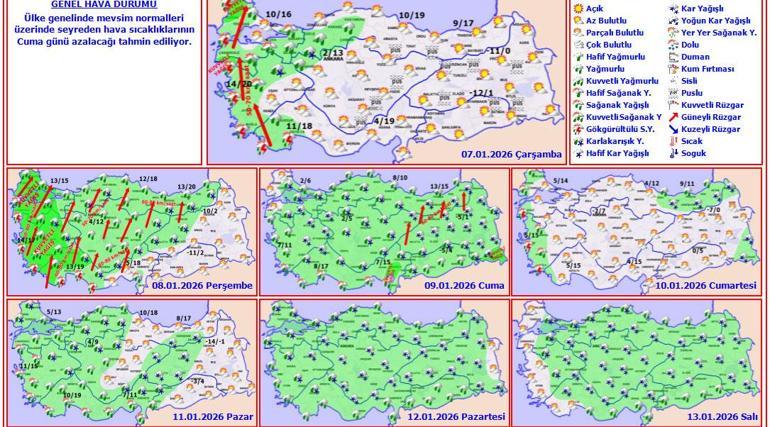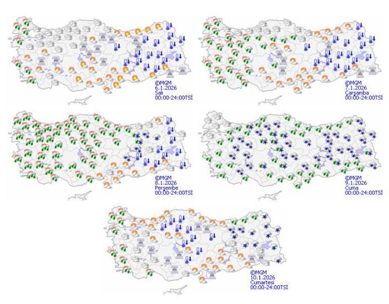 Meteoroloji Genel Müdürlüğü tarafından yapılan tahminlere göre: Ülkemizin kuzey, iç ve batı kesimlerinin parçalı ve çok bulutlu, Marmara’nın batısı, Kıyı Ege ile Bursa çevreleri, Balıkesir'in kuzey ve batı, Bolu, Karabük ve Kastamonu'nun güney kesimlerinin yağmur ve sağanak yağışlı, diğer yerlerin az bulutlu ve açık geçeceği tahmin ediliyor. İç ve doğu bölgelerde buzlanma ve don ile birlikte pus ve yer yer sis olayı bekleniyor. Doğu Karadeniz’in iç kesimlerinin yüksekleri ile Doğu Anadolu’nun doğusunda yüksek kar örtüsüne sahip eğimli kesimlerinde çığ tehlikesi bulunmaktadır.