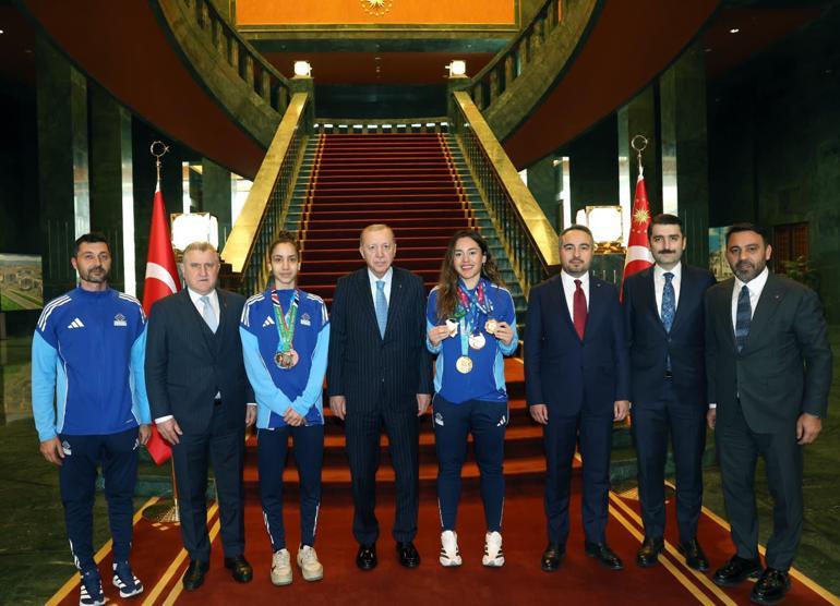 Cumhurbaşkanı Erdoğan, milli tekvandocu Sude Yaren ve Sıla Irmak Uzunçavdarı kabul etti