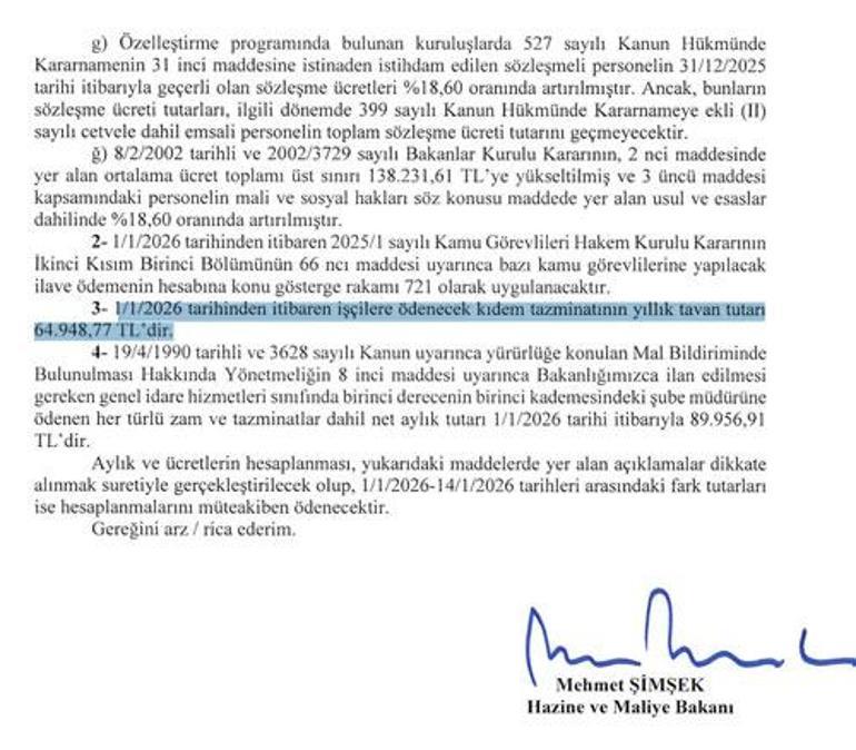Aylık ve ücretlerin hesaplanması yüzde 18,60 oranında artışla gerçekleştirilecek olup, 1/1/2026-14/1/2026 tarihleri arasındaki fark tutarları ise hesaplanmalarını müteakiben ödenecek.