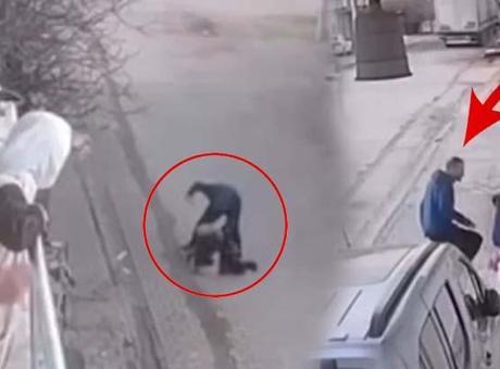 Görüntüde, A.K'nin sokakta gördüğü kadını darbettiği, yere düşen ve zarar gelmesin diye kucağındaki bebeğe sarılan kadına yumruk atmaya devam ettiği görülüyor.