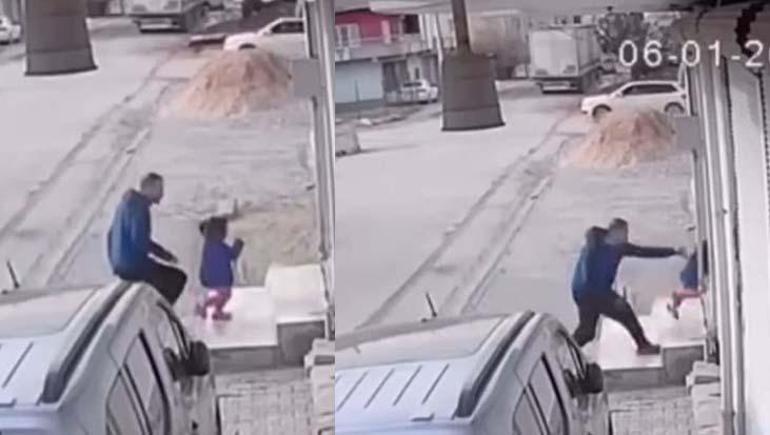 A.K, daha sonra evinin önünde oynayan kız çocuğuna da yumruk attı.