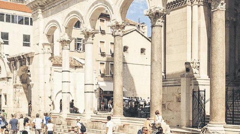 İstanbul’dan direkt uçuşla ulaştığımız Split’i yıllardır merak eder, Roma İmparatoru Diocletianus’un (284-305) Split’te yaptırdığı ve büyük oranda varlığını koruduğu söylenen sarayını görmek isterdim. İki saate yakın süren bir uçuştan sonra Split Havalimanı’na indik. Kısa sürede pasaport işlemlerini tamamlayarak otelimize doğru yola çıktık. Bizi karşılayan aracın şoförü mükemmel birİngilizceyle, güler yüzle Split ve çevresi hakkında bilgi veriyordu. Yerel saatle sabahın altısıydı. Daha ilk temasta karşılaştığımız bu olumlu tutum bizi çok mutlu etti. Kısa sürede kalacağımız otele geldik; sabahın erken saatleri olduğu için odaların yalnızca birinin hazır olduğu ve buraya yerleşebileceğimiz söylendi. Herkesin yüzü gülüyor, bizi bir müşteriden ziyade misafir olarak karşıladıkları hissi egemen oluyordu. Otelimiz her ne kadar merkezin biraz uzağında kalıyor olsa da yürüme mesafesindeydi. Hemen merkeze doğru hareket ettik, bir kafede kahvaltı yaptıktan sonra yola devam ettik.