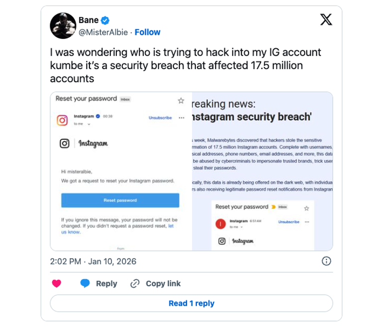 Aslında bu haber, son haftalarda hesaplarında tuhaf hareketler fark eden birçok kullanıcı için de bir anlamda olaya açıklık getiriyor. X platformunda “Bane” adlı bir kullanıcı, attığı mesaj ile durumu doğrulayanlardan biri oldu. Yaşanan sızıntının ardından Instagram hesabına neden izinsiz giriş denemeleri olabileceğini nihayet anladığını belirten Bane, sorunun kaynağını öğrenmenin bir nebze de olsa rahatlatıcı olduğunu söyledi.
