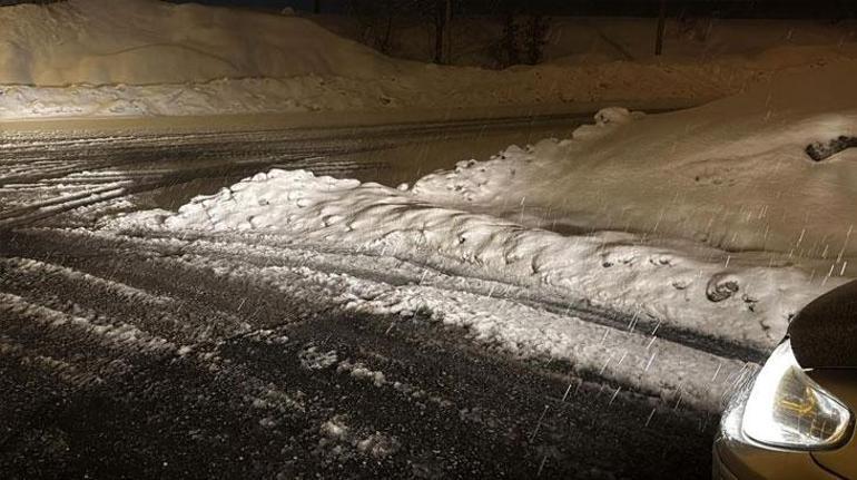 Kara yolunda gün boyu etkili olan sağanak akşam saatlerinde yerini kar yağışına bıraktı.