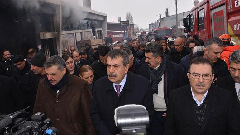 Olay yerine gelerek Vali Mustafa Çiftçi'den bilgi alan Milli Eğitim Bakanı Yusuf Tekin, açıklama yaptı. Bakan Tekin, "Saat 12.30'da yangınla ilgili haber geldi. 5 dakika içinde Büyükşehir Belediyesi itfaiye ekipleri müdahale ettiler. Toplamda 30 yangın söndürme aracıyla beraber müdahale edilmiş durumda. İçerde 8 kardeşimiz vardı. Tamamı çıkarıldı. Yangın kontrol altına alınmış durumda" dedi.