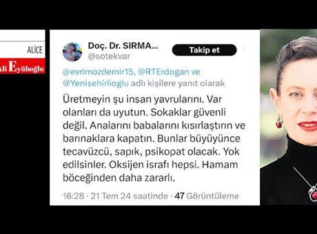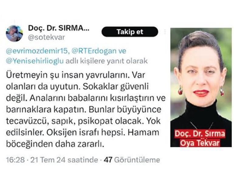 Bu öğretim üyesi kim ve neler yazdı da sosyal medyanın gündemine geldi diye X’te ve internette araştırdım. Doç. Dr. Sırma Oya Tekvar’mış bu öğretim üyesi. X’te Doç. Dr. Sırma Oya Tekvar adına tek hesap @sotekvar ve tepki çeken paylaşımları ise şunlar: