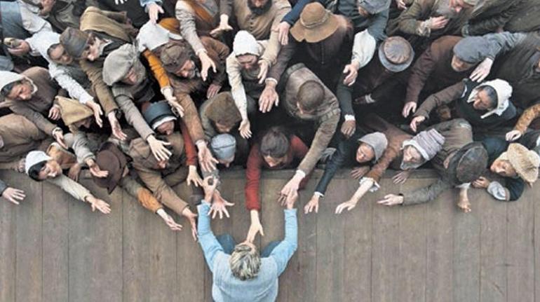 Çekim deneyimini rollercoaster’a binmeye benzetiyor ki, çok haklı, izlemesi de öyle. Özellikle de o anlatıla anlatıla bitirilemeyen Shakespeare’s Globe’daki “Hamlet” sahnesi. Jessie Buckley’nin 2013’te Globe’da, bu sahnede Shakespeare’in “Fırtına”sında oynadığını belirttikten sonra o onun yüzüne odaklanan sahnenin sekiz günde çekildiğini, en önemli duygusal kırılma anlarının da senaryoda yer almadığını ekleyelim. Filmin son çekilen sahnesiymiş ve Buckley’in etrafı 300 figüranla çevriliyken sahnedeki Hamlet’e elini uzatması mesela, yokmuş senaryoda. Kendisini son derece başarısız hissettiği beşinci gün eve dönerken arabada Max Richter’in finalde kalbimize sokulan bıçağı çeviren müziği (“On The Nature of Daylight”) çalmaya başlamış. Buckley bunu yönetmene yollamış ve sabah buluştuklarında da “Ben orada her biri hayatta kendi yasını yaşayan 300 kişiden biriyim” demiş. İşte o buluşan ellerin ortaya çıkışı böyle. Ve bizi “Hamnet” filmine bağlayan sebebin de. Her birimizin kendi yası, kendi sevme ve bir gün kaybetmeyi göze alma cesareti buluşuyor o sahnede.