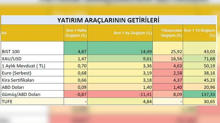 - Altın yıllık yüzde 71.68 getiriyle istikrarlı.